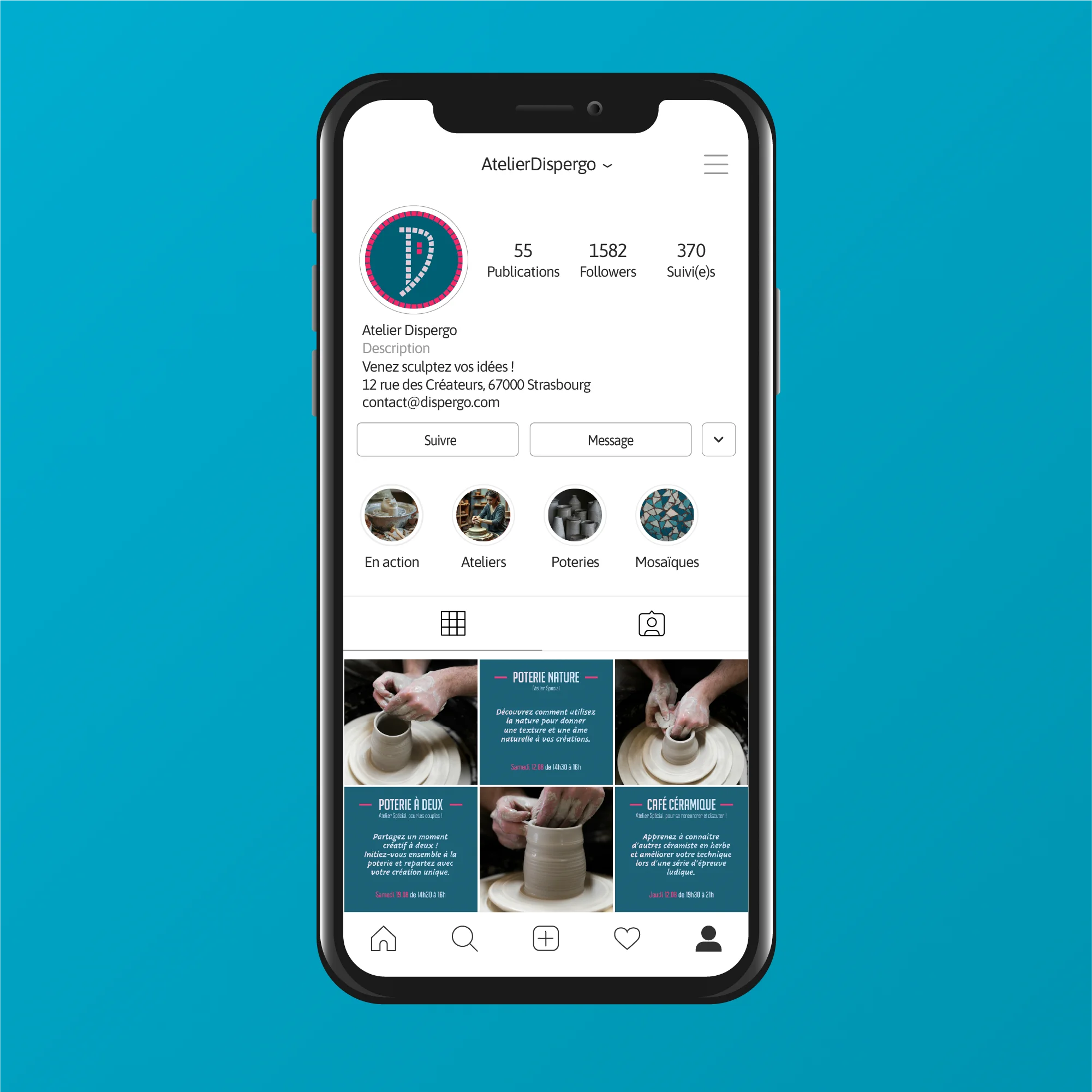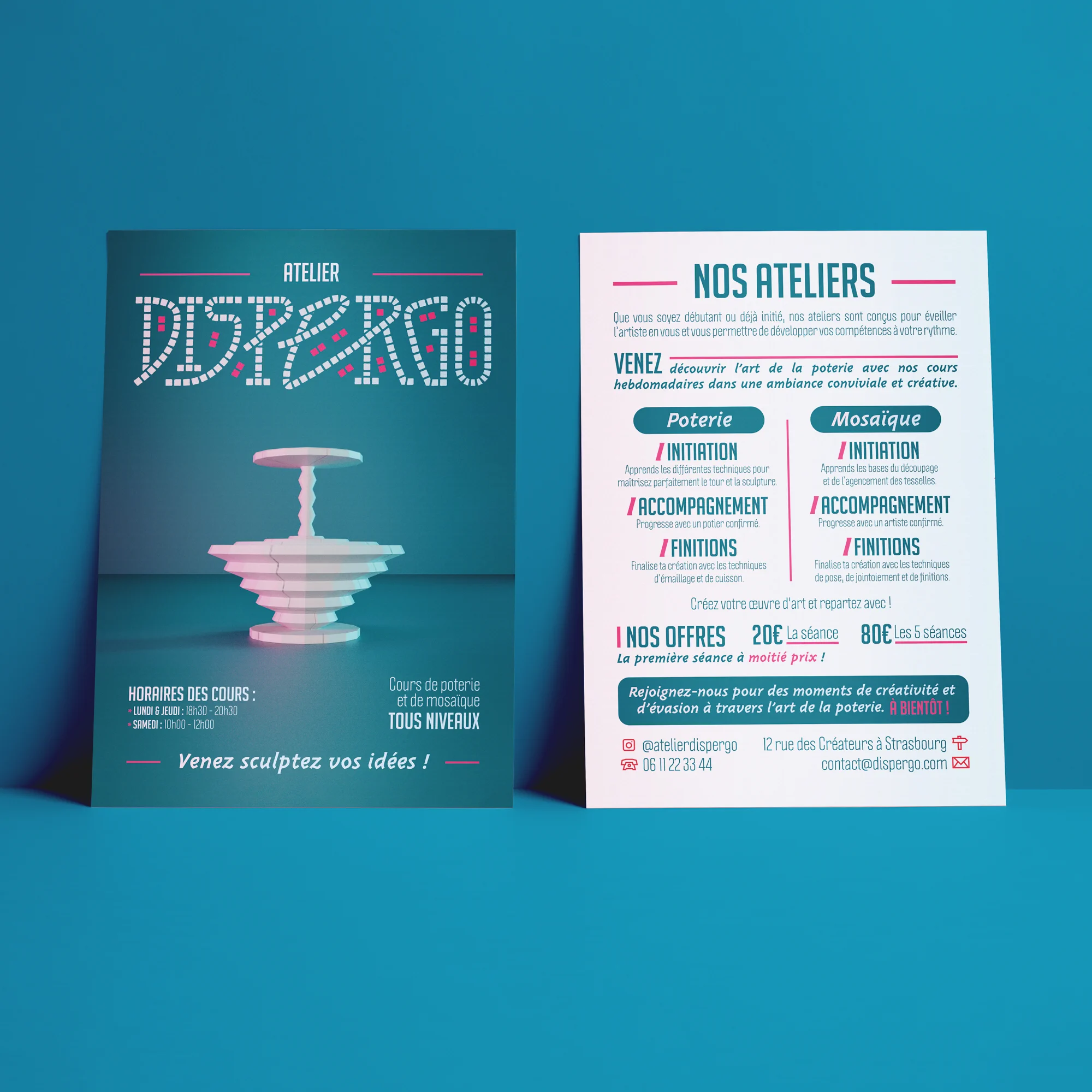 Pour le lancement de l’atelier de poterie Dispergo, l’enjeu était de concevoir une identité visuelle qui reflète l’équilibre entre artisanat et modernité. Le client souhaitait une image forte, capable de mettre en valeur ses deux disciplines tout en se démarquant de la concurrence.