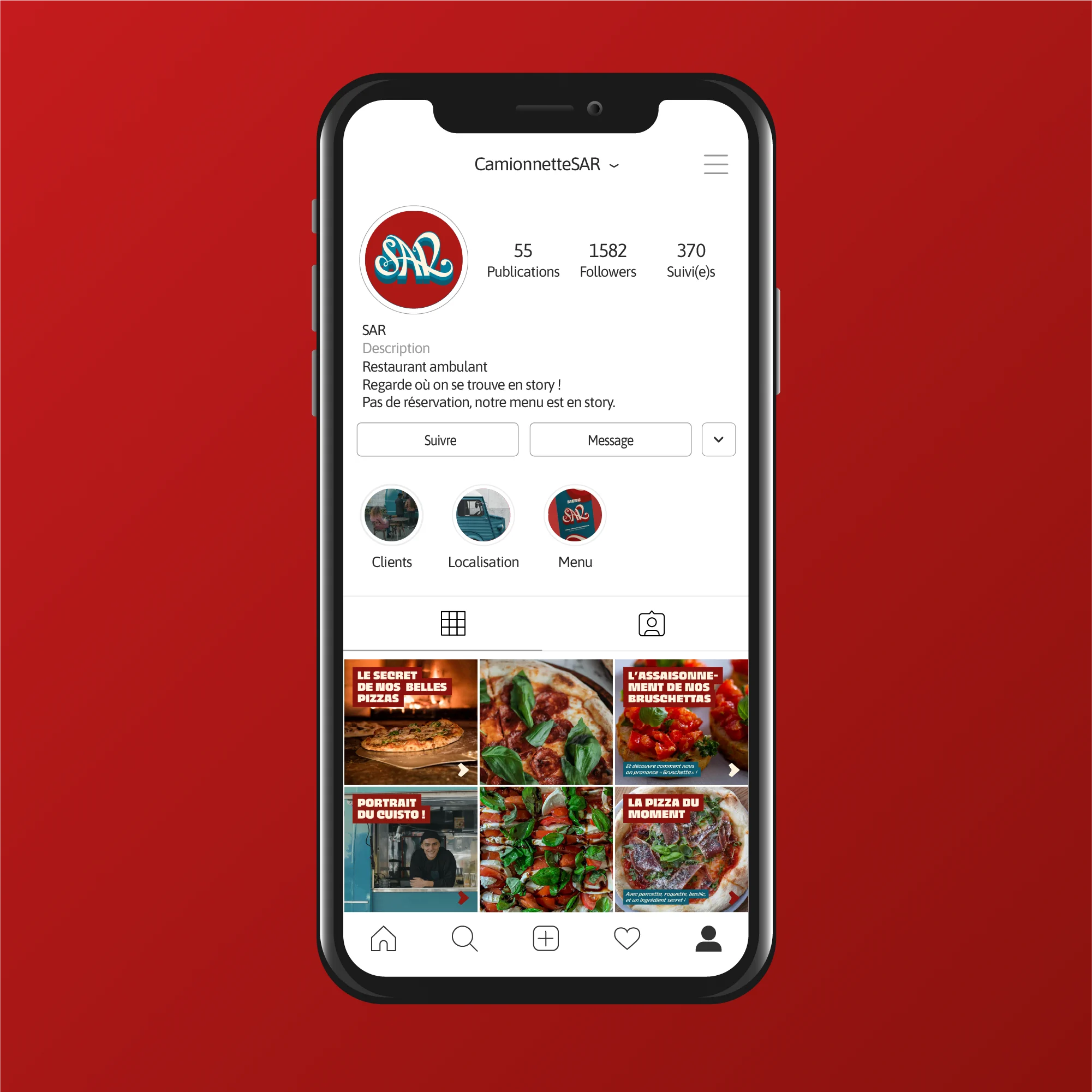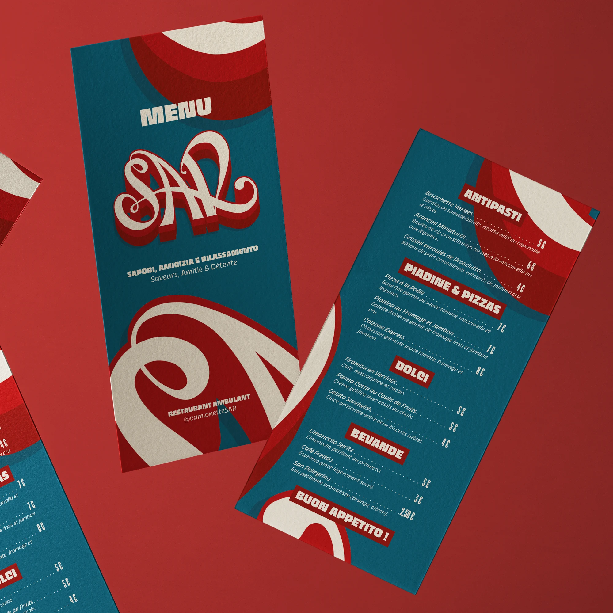SAR est un foodtruck ambulant qui fait découvrir la cuisine italienne dans le Grand-Est, mêlant tradition et modernité. J’ai conçu une identité visuelle qui traduit cette dualité : une élégance intemporelle inspirée de l'essence des grandes typographies italiennes, associée à une touche contemporaine pour s’éloigner des clichés habituels du foodtruck.