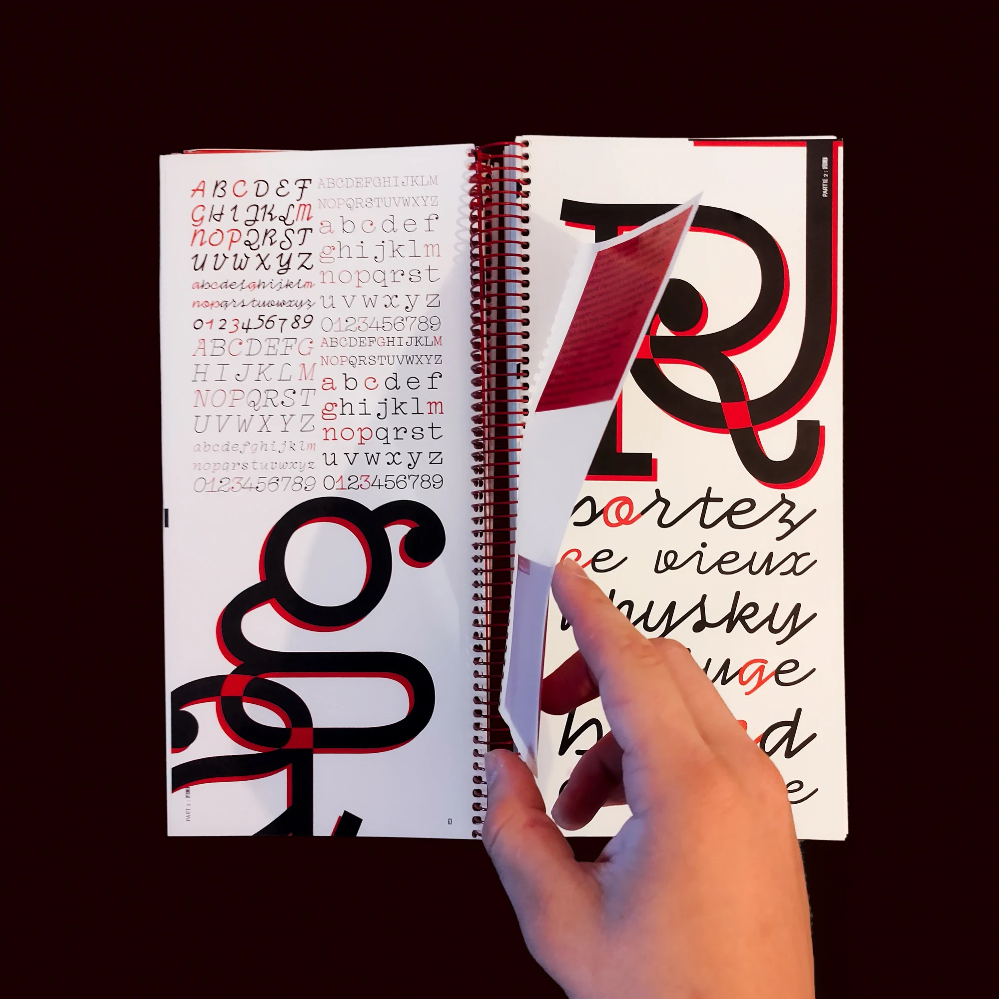 L’ouvrage final combine design audacieux et clarté visuelle. J’ai opté pour un format haut et étroit mettant en valeur chaque police et chaque dessin de caractère, avec une impression et un façonnage soigné. Ce choix permet de séduire à la fois les experts et les curieux, tout en reflétant l’esprit innovant de Velvetyne.